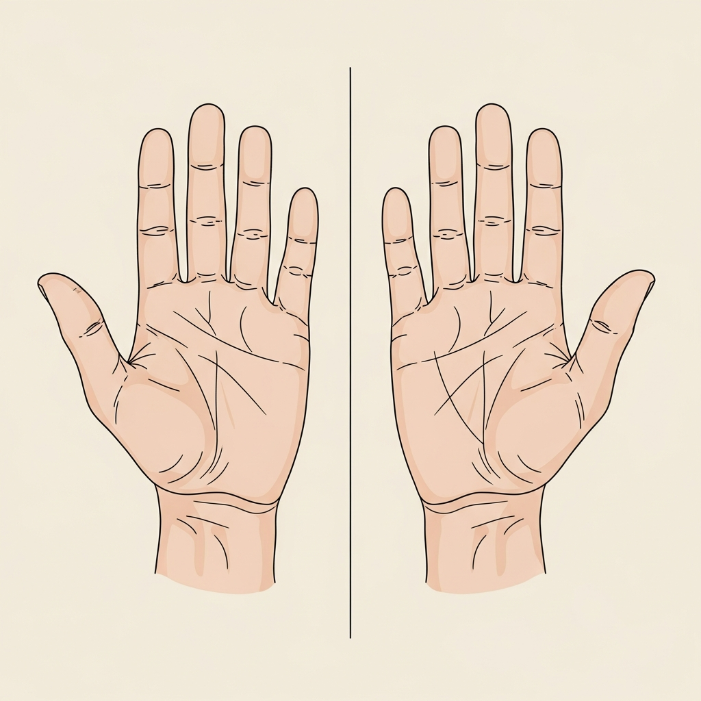 과거 동양의 관상학에서는 음양오행설에 기초하여 '남자는 양(왼쪽), 여자는 음(오른쪽)'이라 하여 보는 손을 달리했습니다. 이는 남성 중심의 봉건 사회에서 남성은 사회적 활동(양), 여성은 가정 내조(음)라는 역할이 고정되어 있었기 때문입니다.
